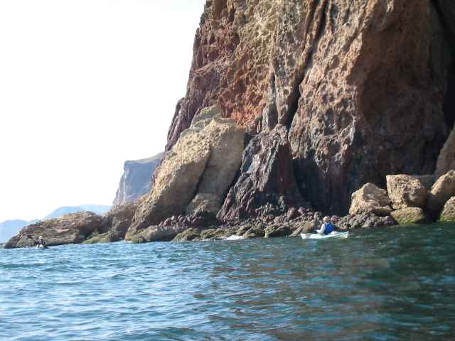 Roger lamb in front of cliffs on south side of Tiburon Island