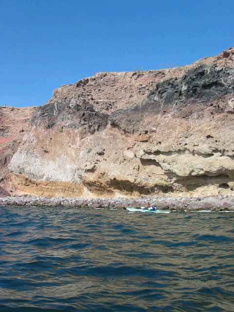 Roger lamb in front of cliffs on south side of Tiburon Island