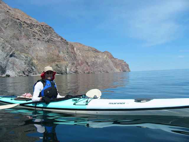 Roger Lamb reflected in calm water on SE corner of Isla San Esteban