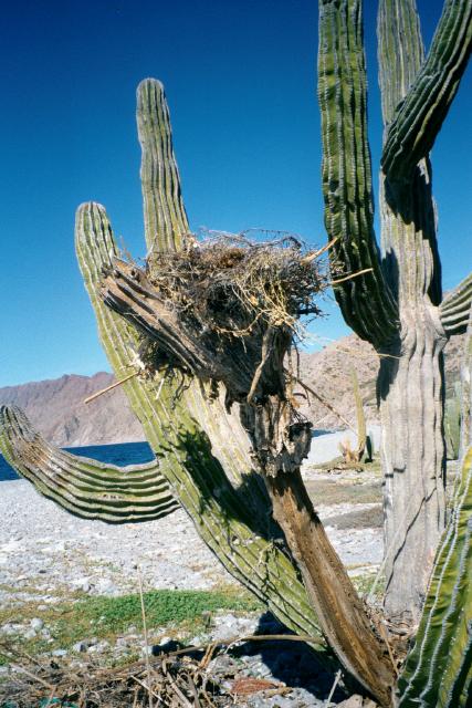 Osprey nests were usually on rocky points, this one in a cardone cactus.