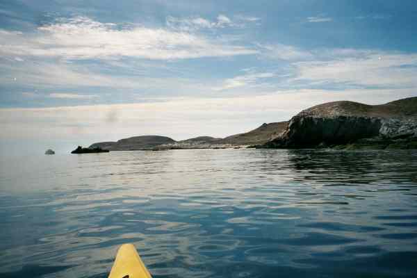 View ahead in calm morning water