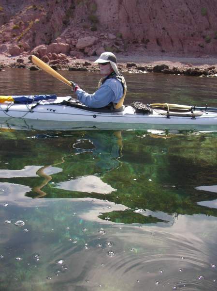 Herb Howe paddling on clear water