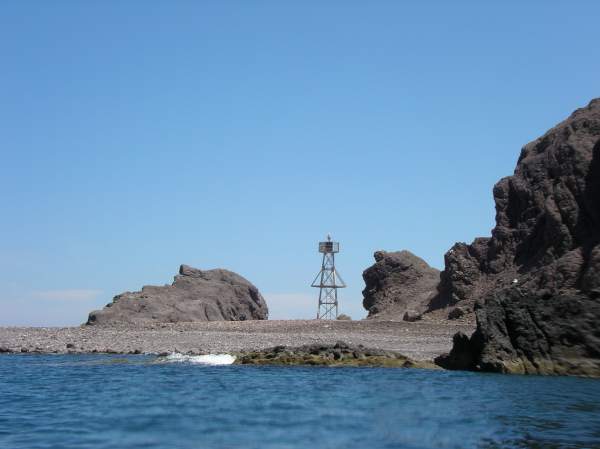 Faro, navigation light, on the northeast corner of Isla Carmen