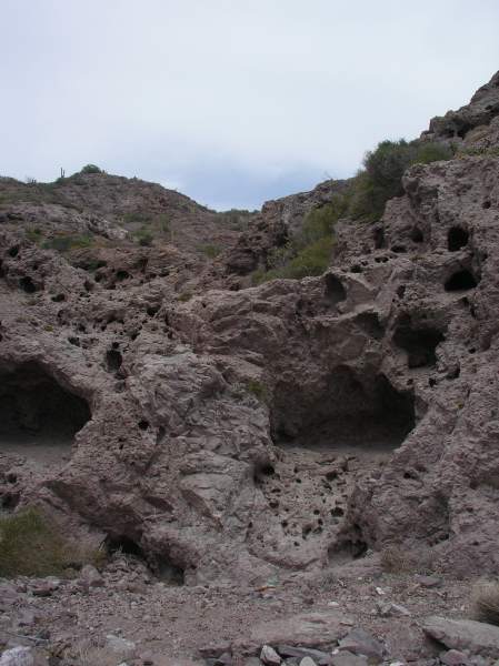 Micro-caves in the hill behind our camp