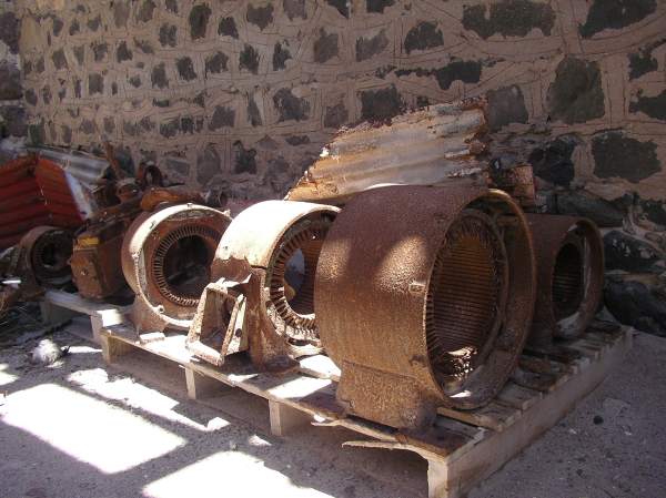 Old generator housings in the power house at the ghost town on Isla Carmen