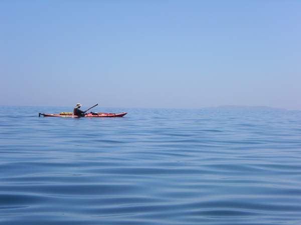 Doug Hamilton paddling down the east shore of Isla Carmen