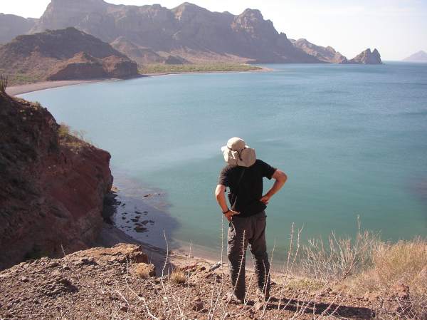 Doug Hamilton lookin down at camp from the top of Punta La Aguilillo