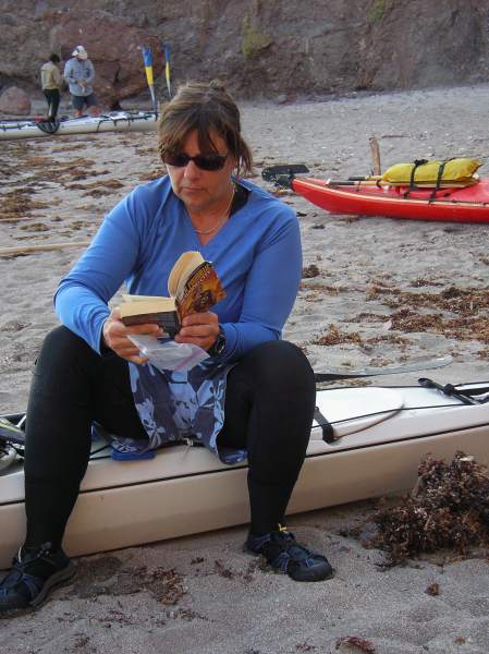Kate DesLauriers reading on a layover day on the beach at Punta La Aguilillo