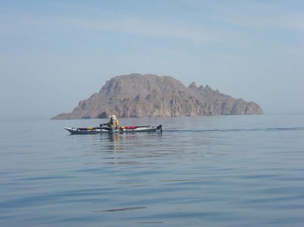 Andrea Wolf in front of Isla Danzante (seen on end)