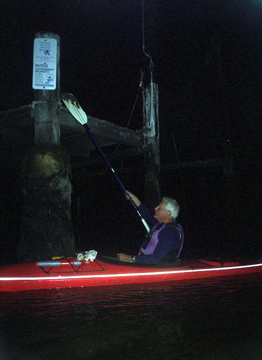 Don Fleming poking the 'do not land here' sign on east Marin Island.