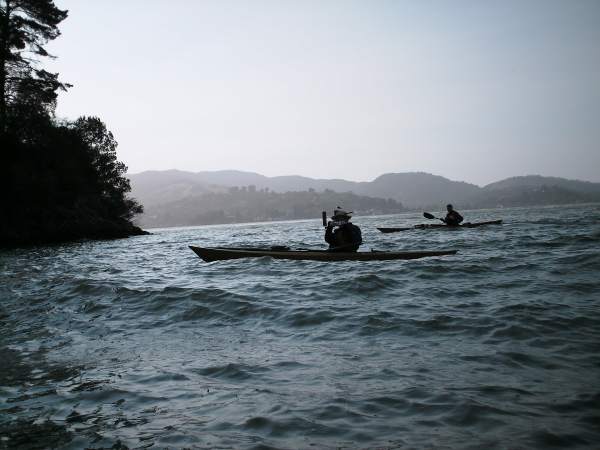 John Boeschen and Indiana resting from the wind and waves behind East Marin Island
