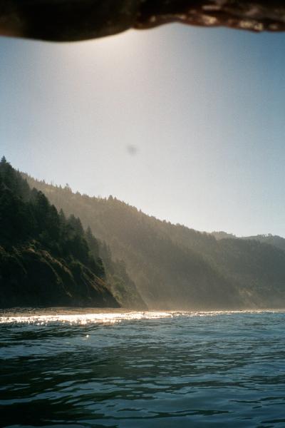 The shore is calm behind the canyon, then gets rough again at the next point.