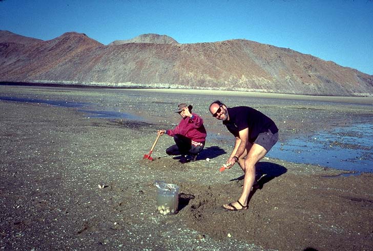 We collected clams for dinner at low tide in the