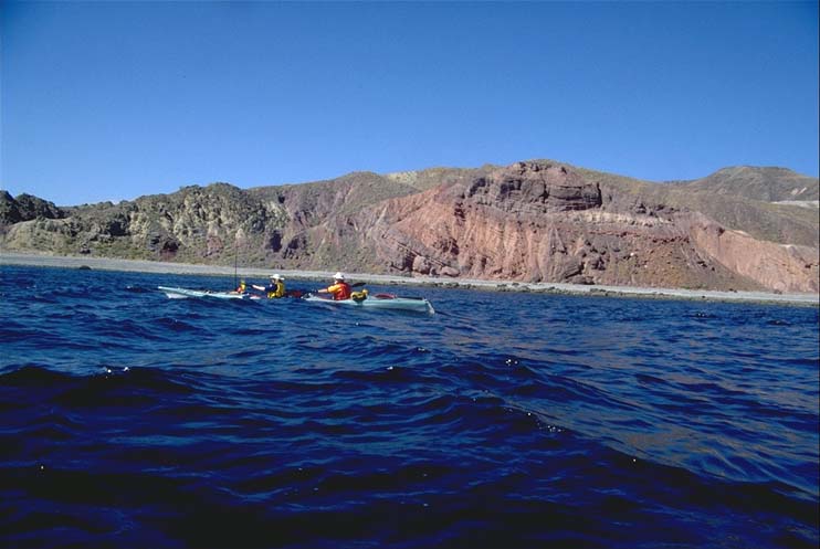 Jef and Mari's ouble kayak leaving pink cliffs