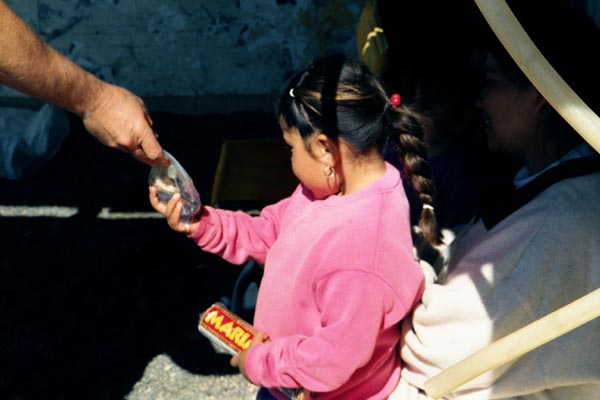 Giving guifts to shy ninas.