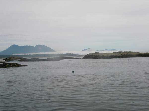 Fog fills in the east side of Cow Bay