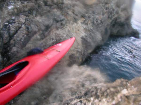 My kayak parked 25 feet above the water while I dove for abalone