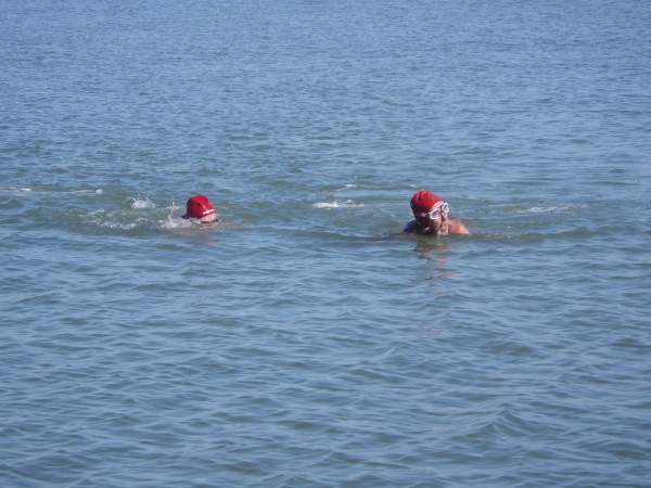Bo Barnes and Paul Nixon going swimming at Point Pinole