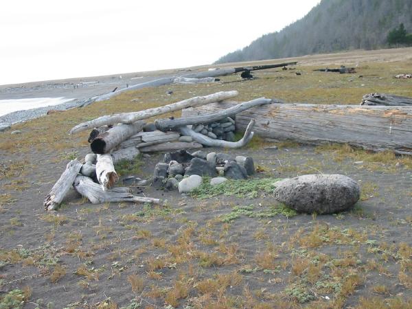 Driftwood and stone shelters on Miller Flat