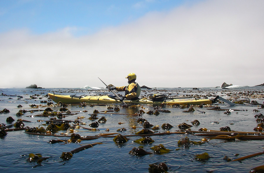 The Intrepid Kayaker in the kelp at Fort Ross Reef