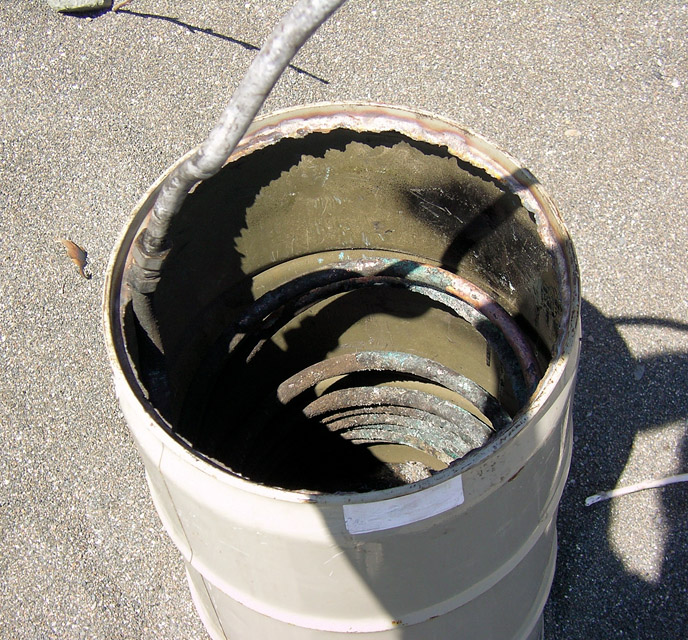 The new efficient driftwood fired hot tub heater on Lost Beach
