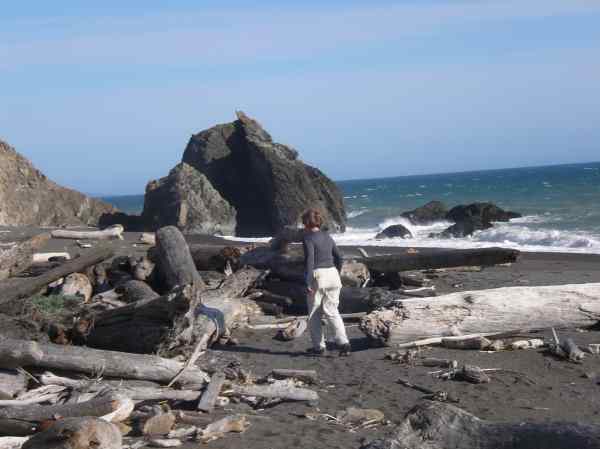 Dörte Mann off to collect driftwood for the hot tub