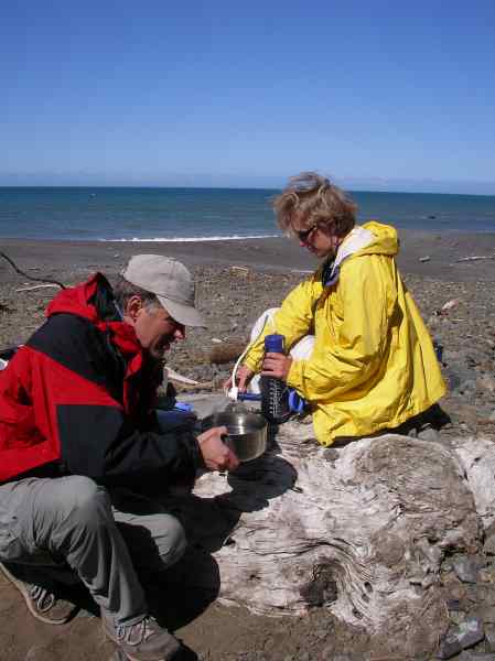 Dave Littlejohn and Dörte Mann filtering water at Lost Beach