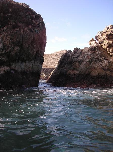 A slot through one of the Bird Rocks of Point Lobos State Reserve