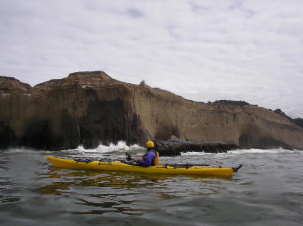 Gregg Berman in front of limestone cliffs and caves south of Half Moon Bay
