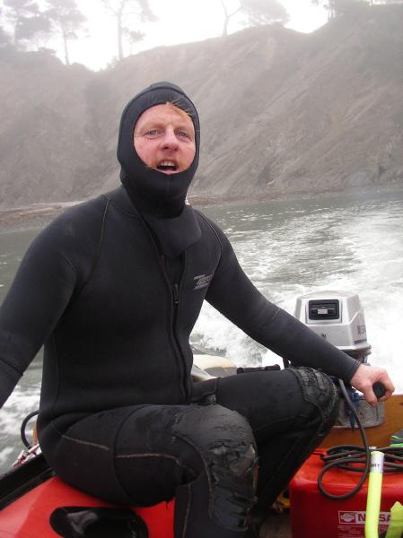 My brother Ralph driving us in his Zodiac to go abalone diving