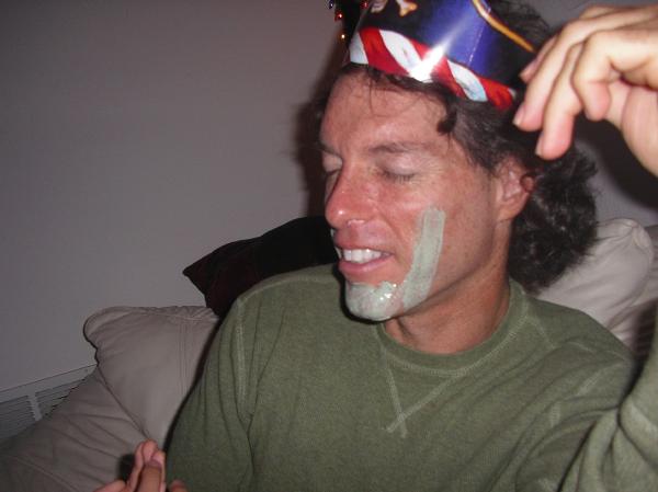 Gregg Berman allows Ed Andersons daughter to paint his face green