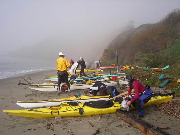 Paking up in the fog on Perls Beach