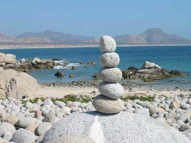 The smooth granite cobble is stacked into 100\'s of stone ducks