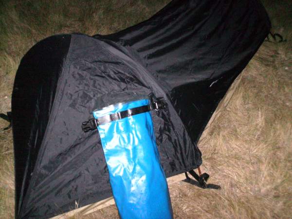 My ninja camping bivy tent on Brooks Island