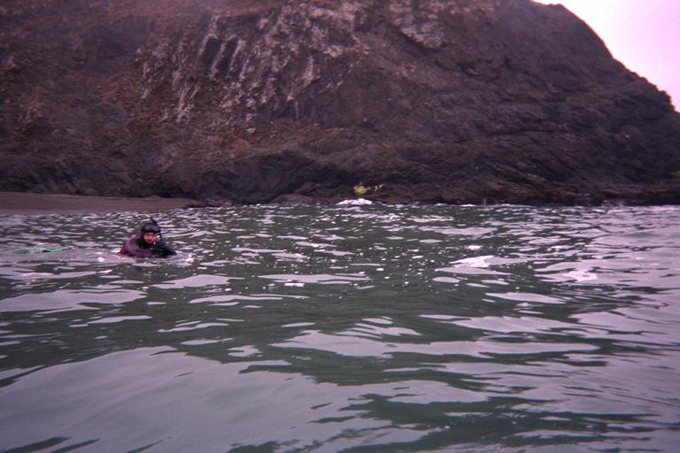 Just south of the beach there is a rocky point separated from the