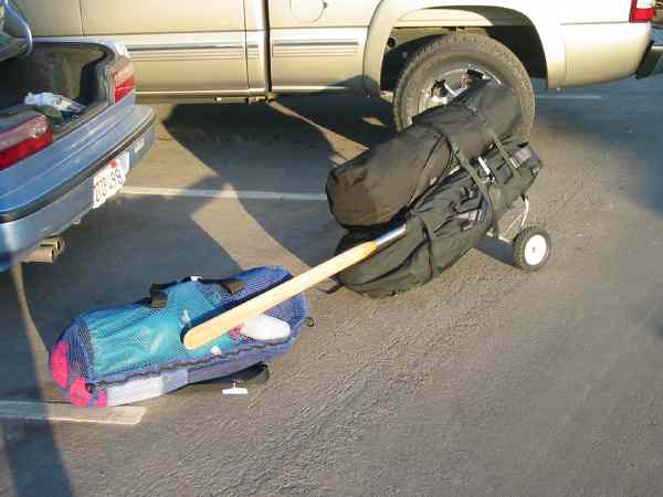 My kayak and gear transformed into a wheelbarrow to roll to my car
