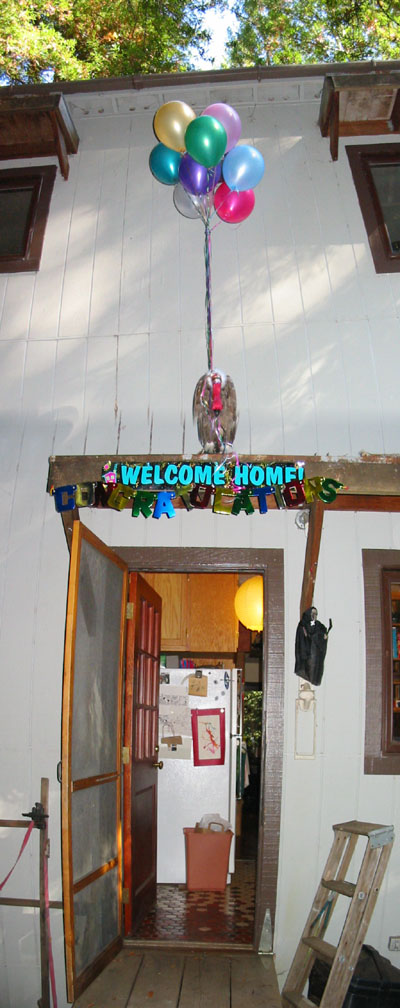 The welcome home party, a vulture saying "Cheated Death Again!"