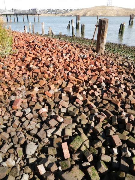 Much of the shoreline here is old bricks from brickworks