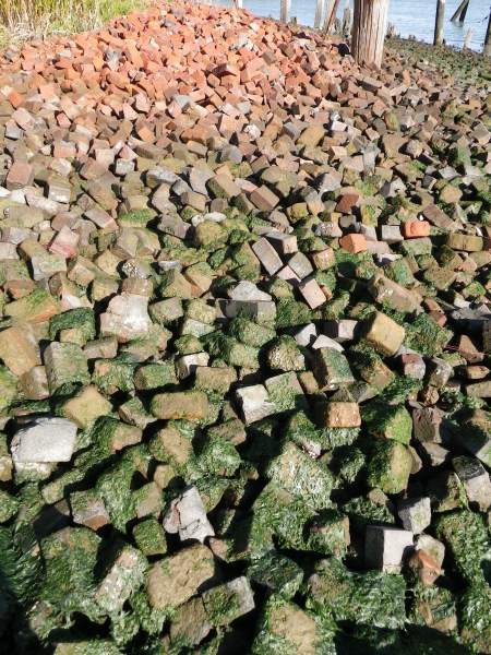 Much of the shoreline here is old bricks from brickworks