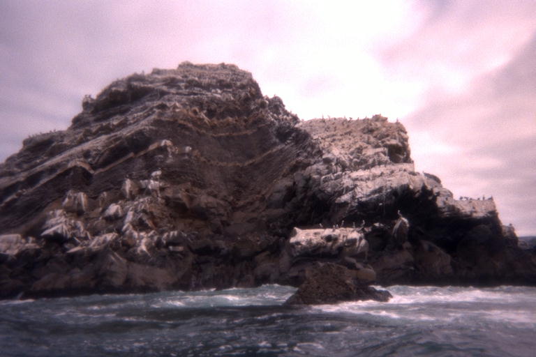 San Pedro Island viewed from the south, far away and up close.