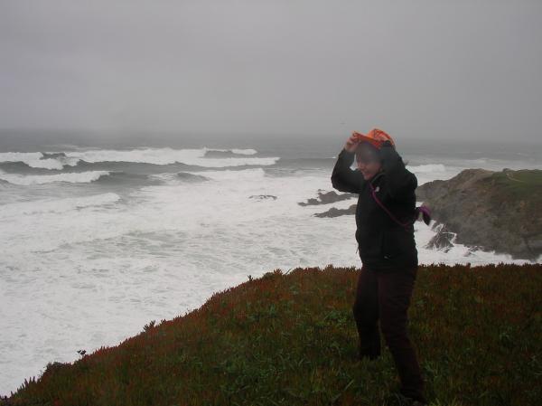 Kate DesLauriers watching storm waves arriving at Bodega Head