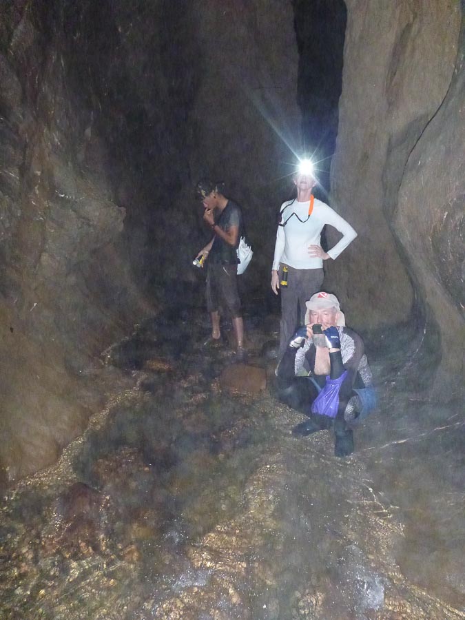 Big, Sally Tobin and the intrepid kayaker inside a cave in Khao Sok, Thailand