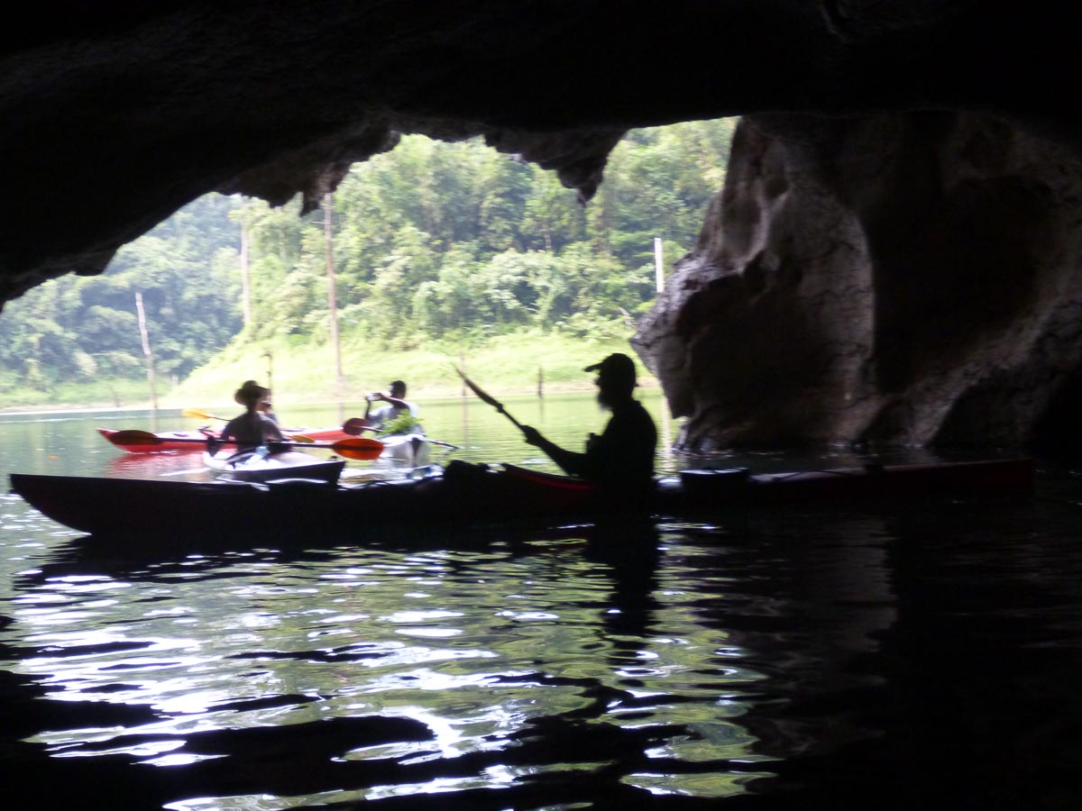 The silhouette of the intrepid kayaker in a cave in Khao Sok, Thailand