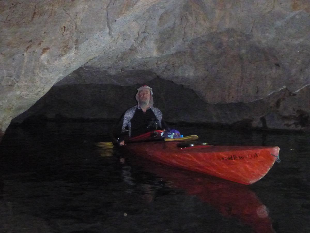 The the intrepid kayaker in a cave in Khao Sok, Thailand