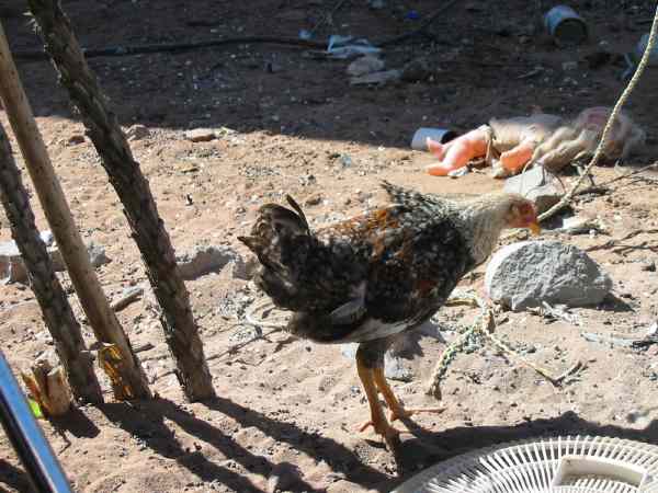 A chicken in Ernesto Morino's yard at Punta Chueca - Sonora