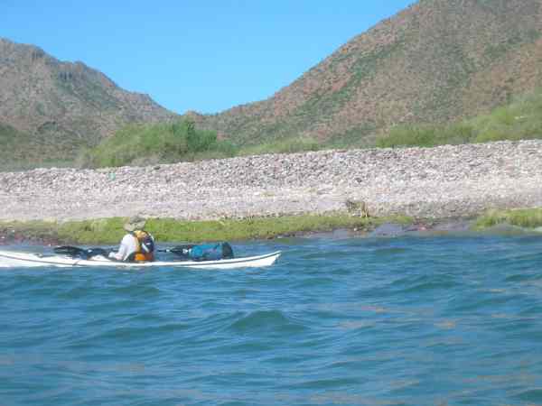 Paddling past Senior Coyote on Isla Tiburon - Sonora