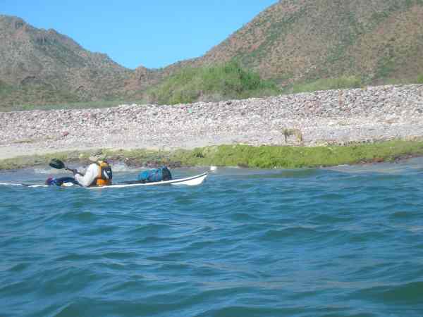 Paddling past Senior Coyote on Isla Tiburon - Sonora