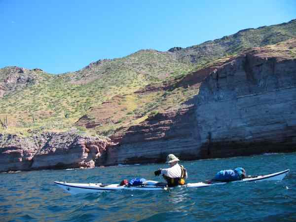 John Somers and Lucy O'Brien in front of green hills - Isla Tiburon - Sonora
