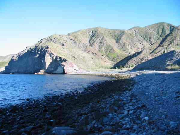 Distant view of our campsite on Isla San Esteban