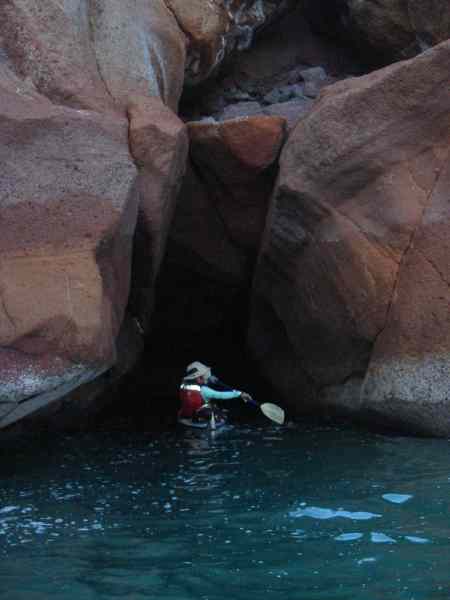 Lucy O'Brien in small cave on the west side of Isla Tiburon